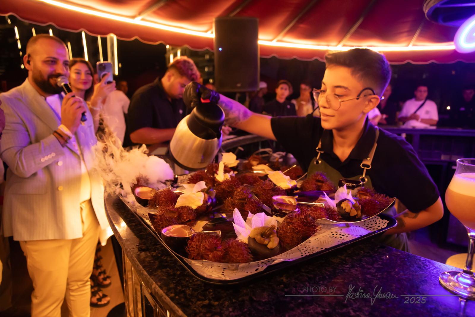 „In unserem Cocktail haben wir die Lychee verwendet – bekannt als die Frucht des Königs. Als Ergänzung wählten wir die Mangostane, die als Königin der Früchte gilt. Mango und Avocado, die in ihren Ursprungsländern als heilige Früchte verehrt und den Göttern geopfert werden, symbolisieren in unserem Drink die Verbindung von Natur, Kultur und Geschichte. Wir wollten den Gästen ein einzigartiges Geschmackserlebnis bieten – inspiriert von Mythen, Farben und spiritueller Symbolik“, erklärt Ege Koç.